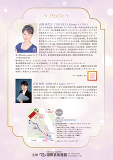 山下優美&太田智子<ピアノ連弾> Primo山下優美・Secondo太田智子 G.フォーレ:「ドリー組曲」より 3ドリーの庭 4 キッティ・ワルツ 6 スペインの舞曲 G. Fauré:《DOLLY》 Op.56 3 Le Jardin de Dolly 4 Kitty-Valse 6 Le Pas Espagnol Primo太田智子・Sesondo山下優美 F.プーランク:ソナタ 1 前奏曲 2 田舎風に 3 終曲 F.Poulenc:SONATE Ⅰ Prelude II Rustique Ⅲ Final